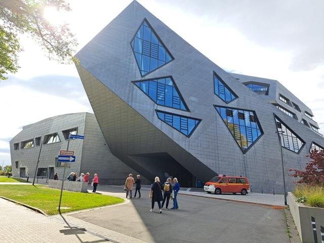 Tag 2: Es ist recht kühl, jedoch sonnig und trocken. Ein Bus führt uns zu all den Sehenswürdigkeiten rund um Leipzig, die sich außerhalb des Straßenrings, der auf der ehemaligen Stadtmauer verläuft, befinden. Hierbei treffen wir unsere bewährte Gästeführerin vom Vortag wieder. Sie ist in Hochform und erklärt, beschreibt und erzählt neunzig Minuten am Stück. Wir sitzen im Doppeldecker oben und lauschen und genießen. Danach entern wir das Museum der bildenden Künste, wo sich jede selbständig durch die z.T. hochinteressante ständige sowie temporäre Ausstellung bewegt, bevor im Museumscafé eine Pause angesagt ist. Weiter zur Thomaskirche, wo wir eine Motette erleben, einen Gottesdienst mit Chorgesang. Die Kirche ist, obwohl mehr als 80 % der Einwohner Leipzigs Atheisten sind, sehr gut gefüllt. Der Thomanerchor singt, Musiker des Gewandhausorchesters spielen, und eine Pfarrerin predigt. Anschließend ist Freizeit angesagt, die die meisten zum Ausruhen nutzen.